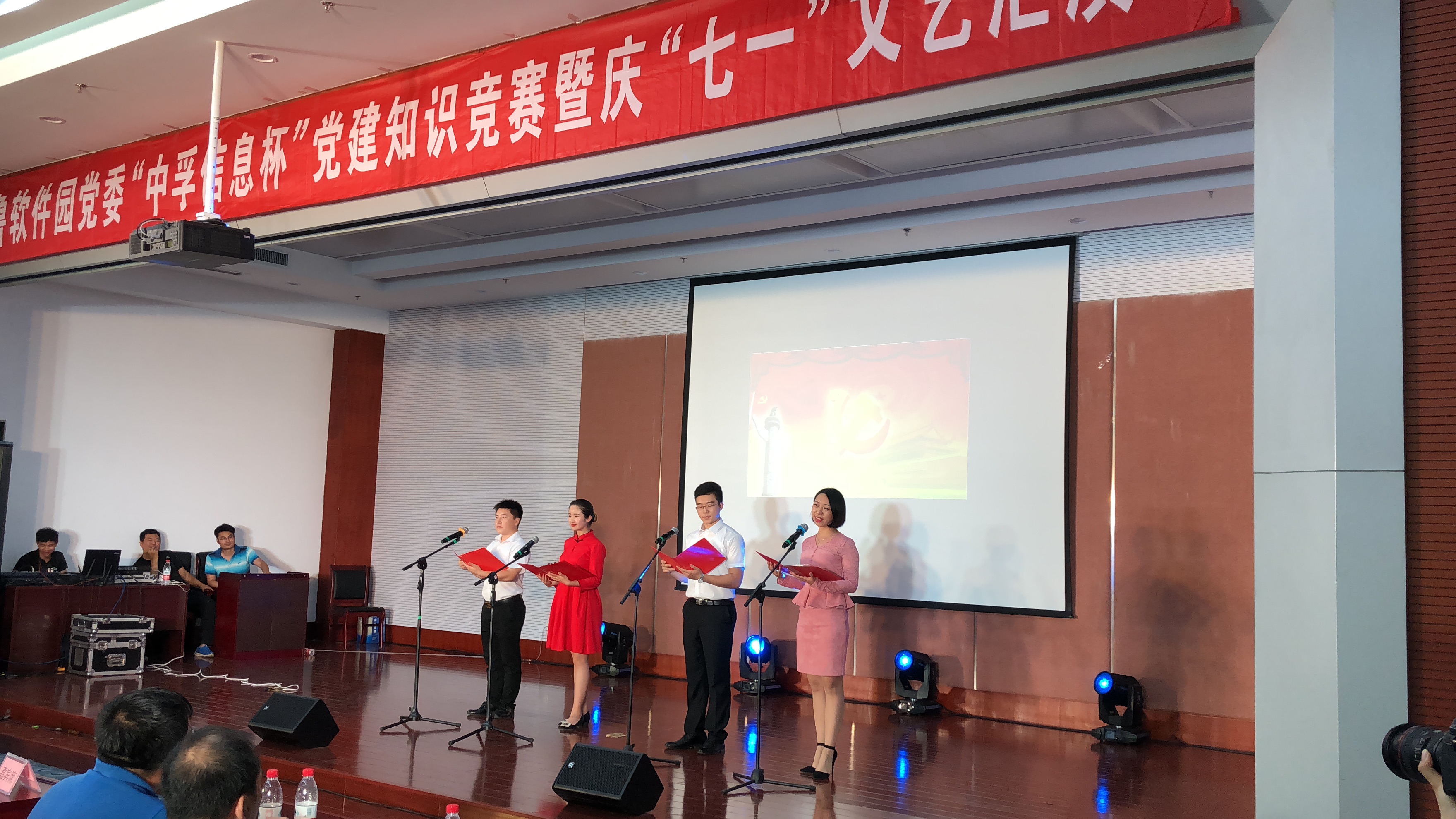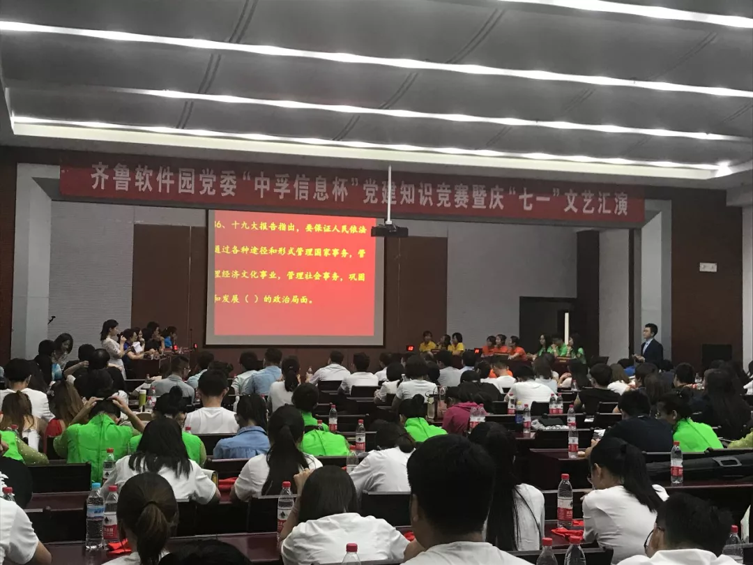 为庆祝中国共产党成立97周年,深入推进党的十九大精神学习,2018年6月30日下午,金年会党总支响应齐鲁软件园党委号召,组织并参与了“金年会杯”党建知识竞赛暨庆“七一”文艺汇演活动,为党的97岁华诞献礼。园区企业联合党委下属企业党组织成员、党建指导员等200余人参加了此次活动。